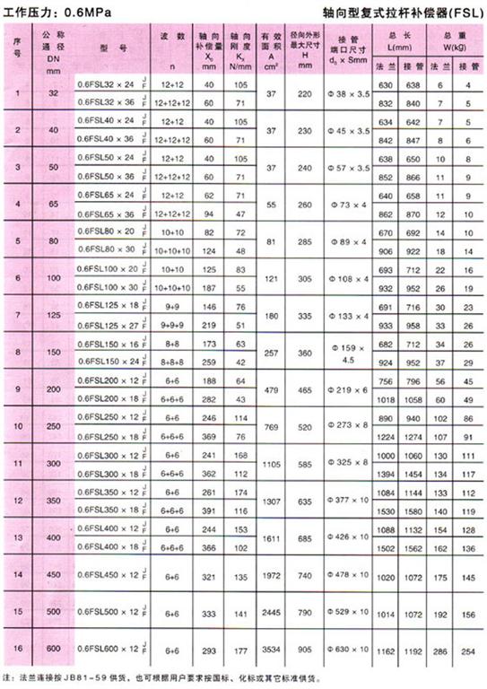 軸向型復(fù)式拉桿波紋補(bǔ)償器(FSL型)參數(shù)1