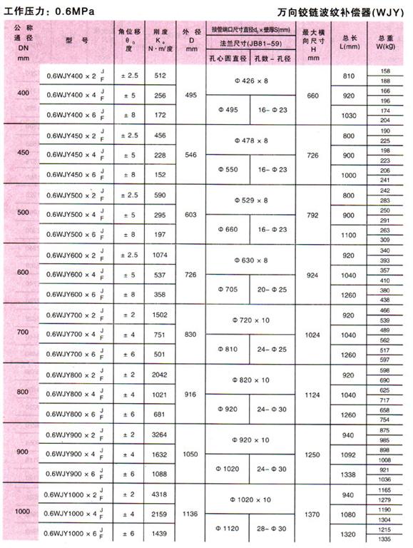 萬向鉸鏈波紋補償器(WJY)參數2