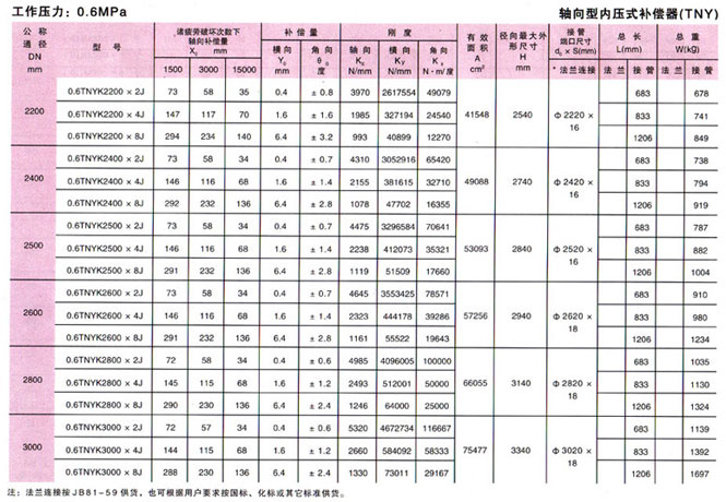 軸向型內(nèi)壓式波紋補(bǔ)償器(TNY)參數(shù)8