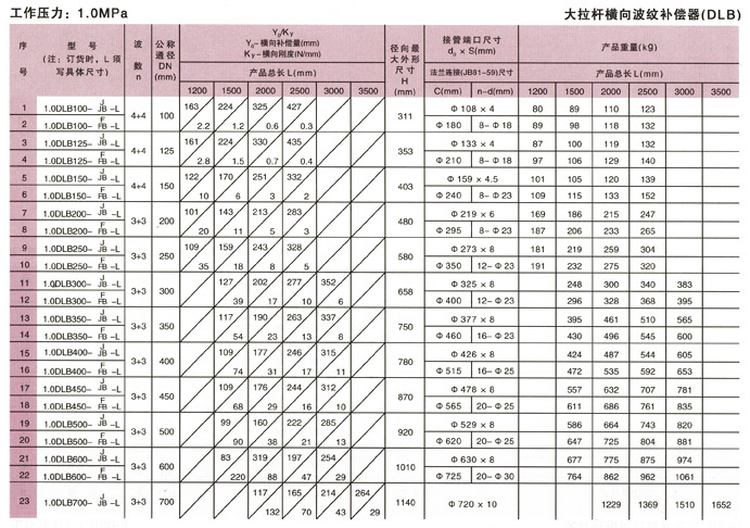 大拉桿橫向波紋補(bǔ)償器(DLB)參數(shù)3