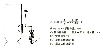 △Y。以_補償器能在水平狀態(tài)下工作。 5.22 靠近燃燒器入口處垂直安裝,此時補償器主要通過軸向伸縮以及少量橫向撓曲來吸收位移。為減少A點受力,補償器按預(yù)拉伸狀態(tài)安裝,預(yù)拉伸量按下式計算: