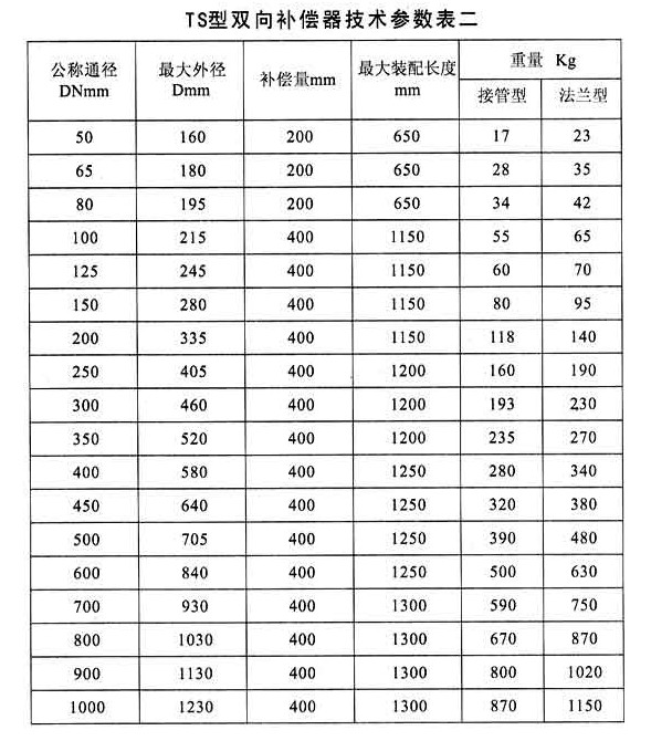 2、TS型雙向補償器技術參數見表2,結構型式見圖二。