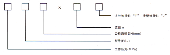 表示:工作壓力為0.6MPa,通徑DN=200mm,波數(shù)為12,接管連接的復式拉桿波紋補償器。