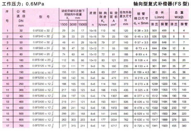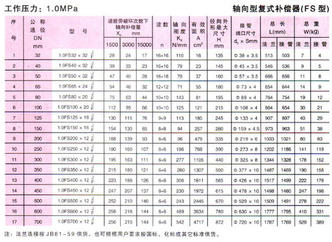 軸向型復式波紋補償器(FS型)參數1