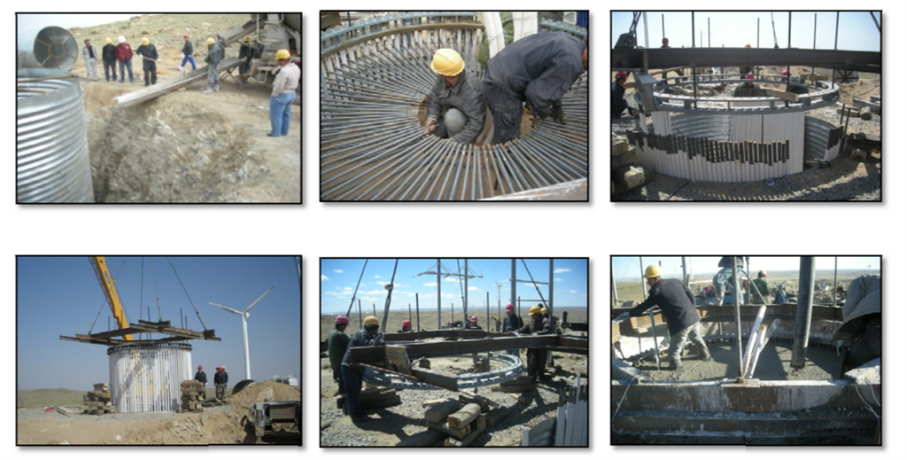 2009年,PH無張力灌注基礎(chǔ)在東半球完成里程碑式的零的突破,在中國內(nèi)蒙古達茂風(fēng)場成功建成2臺金風(fēng)750KW風(fēng)機基礎(chǔ),目前風(fēng)機已經(jīng)安裝完成開始并網(wǎng)發(fā)電。通過對風(fēng)機基礎(chǔ)各項數(shù)據(jù)的監(jiān)測和檢測,基礎(chǔ)及風(fēng)機_指標(biāo)運行良好。這兩臺基礎(chǔ)在為業(yè)主節(jié)省風(fēng)場投資費用同時也說明PH基礎(chǔ)設(shè)計_滿足規(guī)范要求。中國目前現(xiàn)有的施工技術(shù)及裝備安全滿足建造要求。